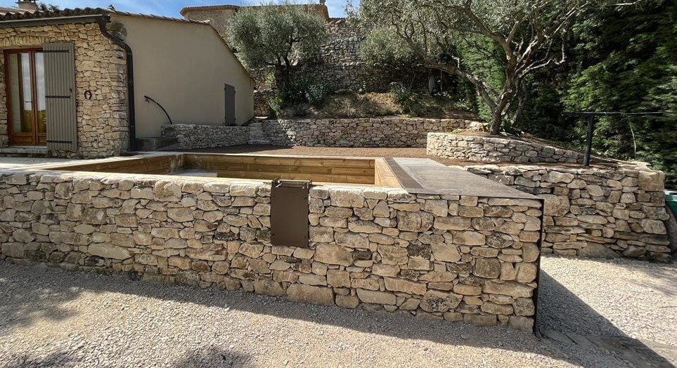 Le caractère de la pierre. Murs en pierre sèche, terrasses ou enrochements : nous structurons votre espace avec des matériaux nobles et un savoir-faire traditionnel.